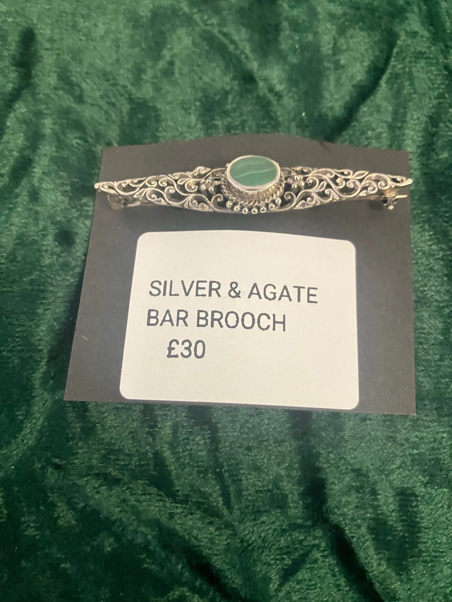 SILVER & AGATE BAR BROOCH
