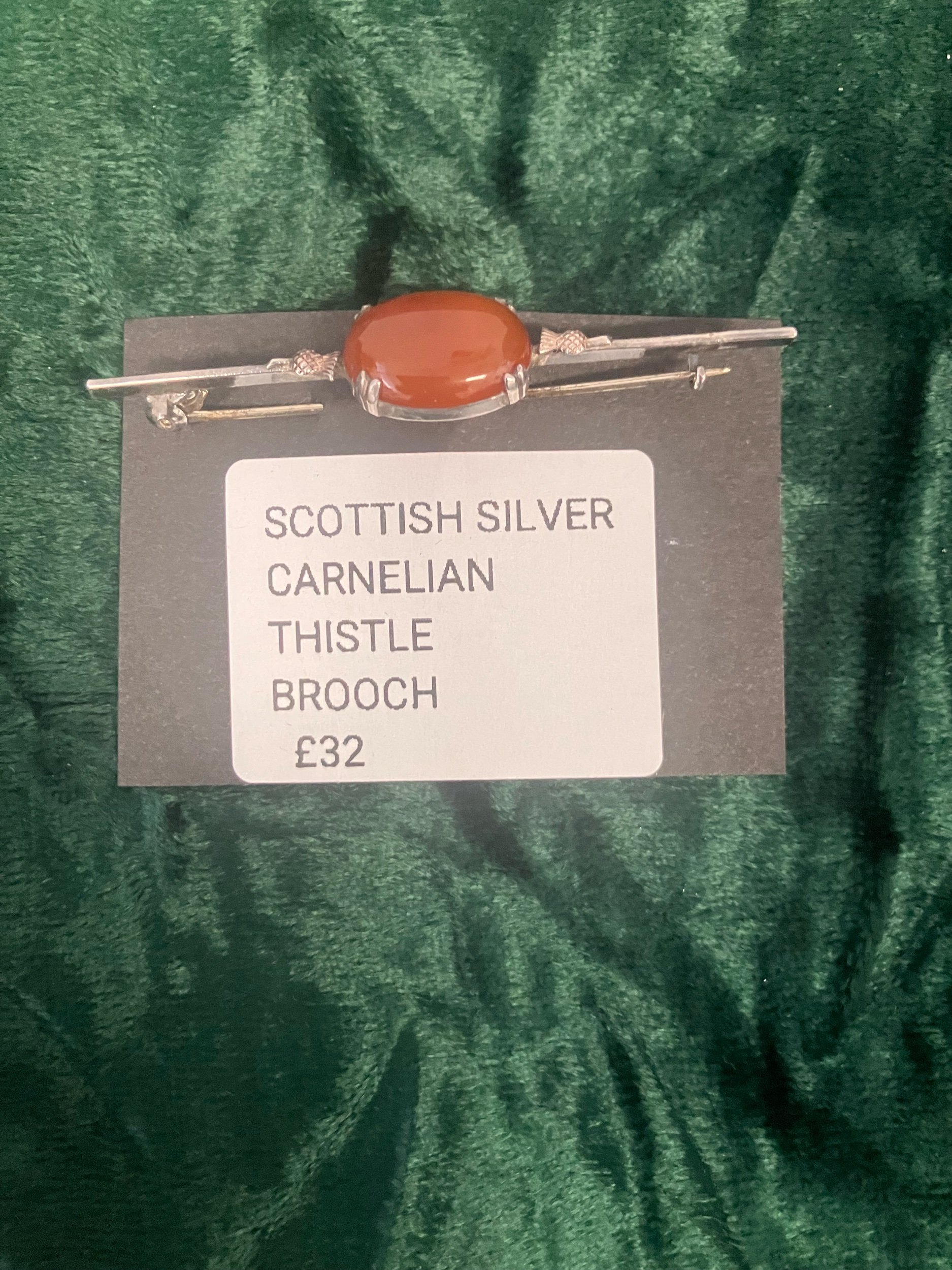 SCOTTISH SILVER CARNELIAN THISTLE BROOCH