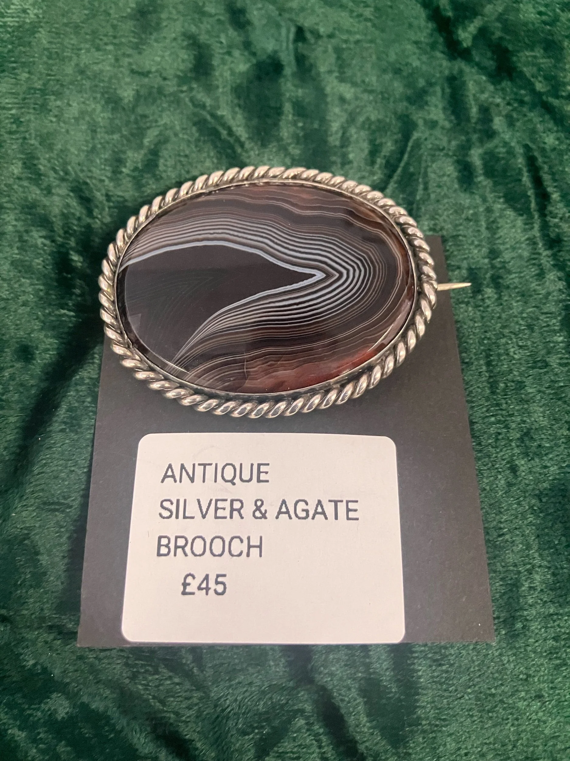 ANTIQUE SILVER & AGATE BROOCH