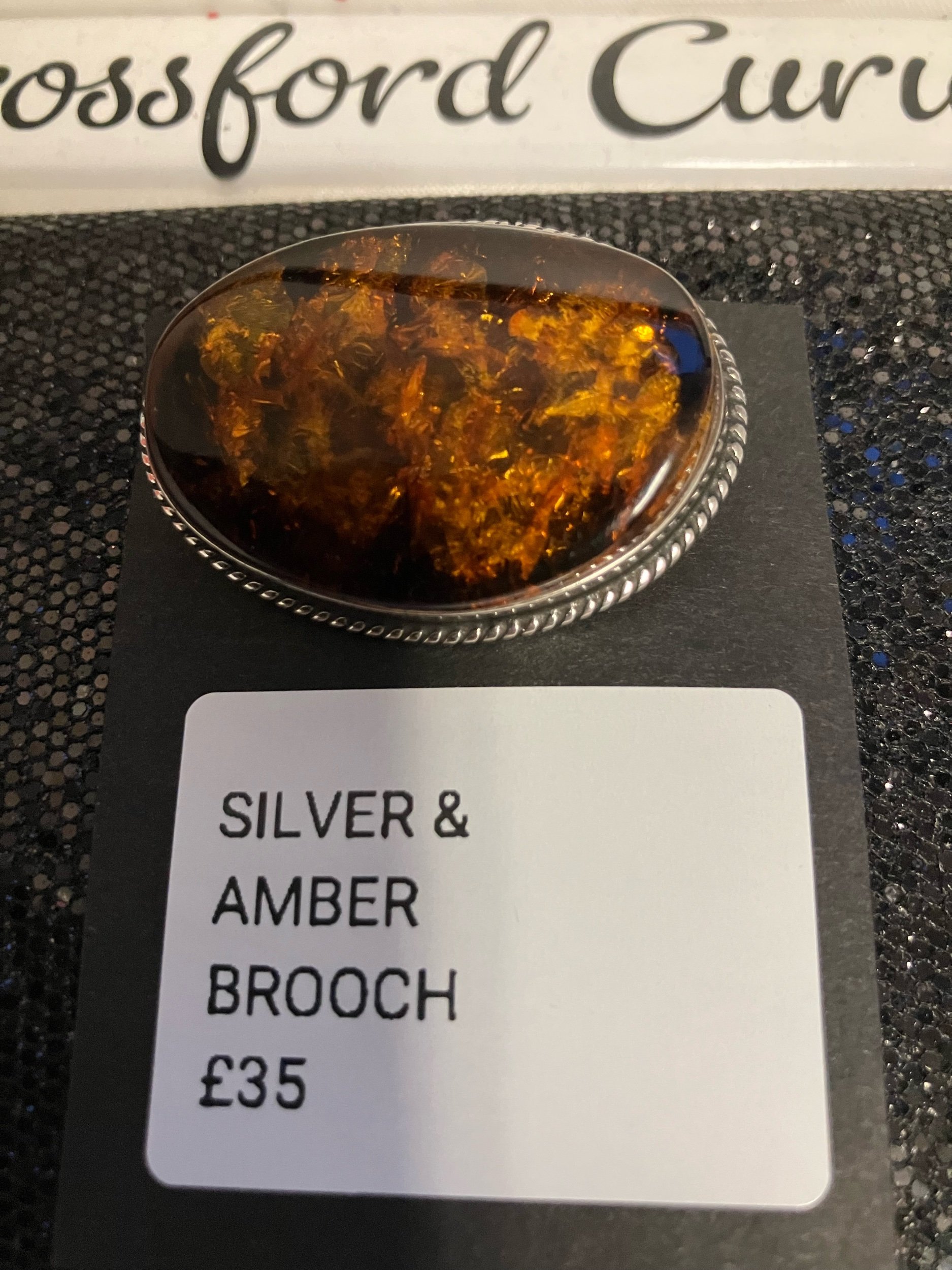 Silver & Amber Brooch (FREE POSTAGE)